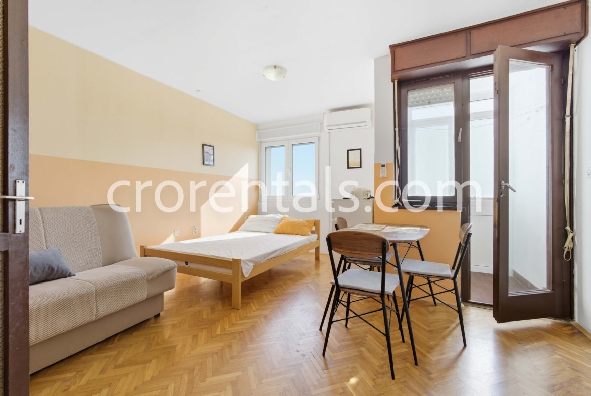 Ova svježe renovirana (2023.) garsonijera/studio apartman idealan je izbor za samce ili par. Stan je potpuno namješten i nalazi se na 4. katu održavane stambene zgrade. Najveća prednost je svakako balkon/lođa za jutarnju kavu i činjenica da je stan spreman za trenutno useljenje.
